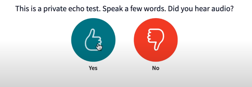 Once you select the audio option the live lecture puts you in an echo test which will create a private echo test for you where you can Speak a few words to test your audio quality and the Microphone is working or not and according to that, you can give a review to the system.