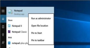 Unfortunately, Windows 8 or 10 makes it annoying to open apps as administrator — but it’s not too difficult. Just search for Notepad, then right-click on Notepad in the search results list, and choose to run it as administrator. If you’re using Windows 10 this will be on the Start Menu.